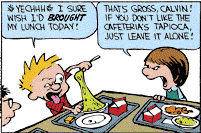 Lunch at Calvin's school is a running gag in Calvin and Hobbes. Calvin always seems to eat next to Susie, and disgusts her with made-up foods.