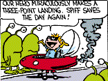 Spiff humorously alludes to the lackluster insurance policy for his spacecraft a few times. Due to extremely frequent crashes, he has very high premiums[3], and he refused the towing rider (a decision he was shown bitterly regretting in one strip), preventing him from being rescued off of inhospitable, far-off alien planets[4].