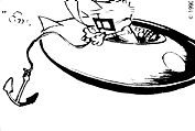 Like many elements of Spaceman Spiff's adventures, the Saucer is a counterpart of a real-life item, in this case a toy spaceship that Calvin is only seen using in a single Sunday strip[2]. The design of the Saucer appears to be carried over almost exactly from this unnamed plaything.