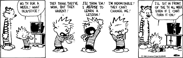 Calvin asks a bad question... and loses TV privileges.